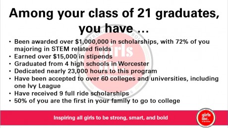 We are so proud of this years 21 graduates. Quite an impressive group, they have dedicated nearly 23,000 hours to this program, received over $15,000 in stipends, were accepted to more than 60 Colleges and Universities, and awarded more than $1,000,000 in scholarships! Best of all,100% of the graduating class will be going to college in the fall, with 72% of them choosing to major in STEM related fields!
